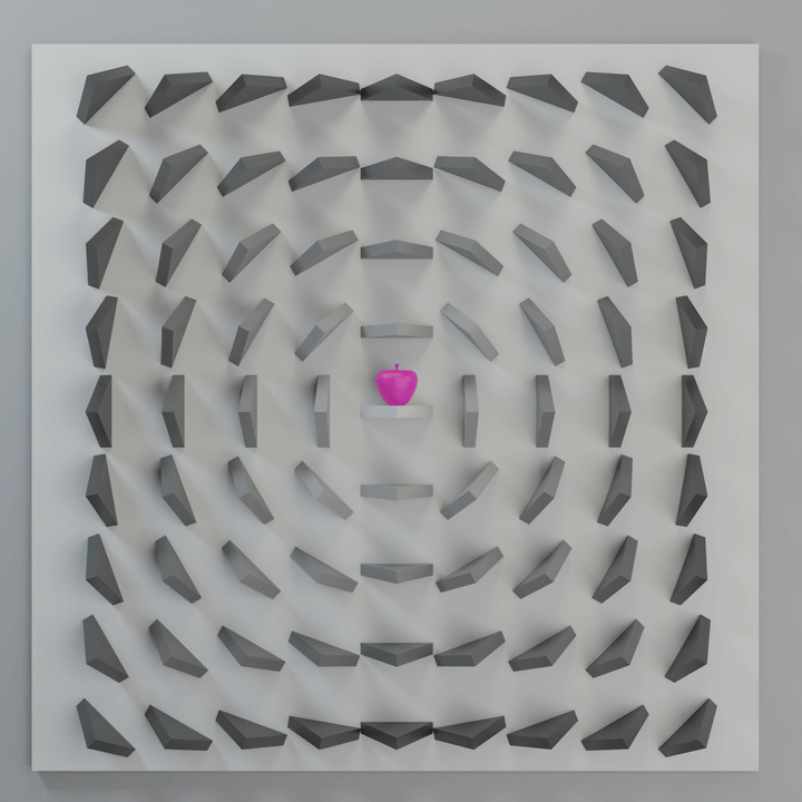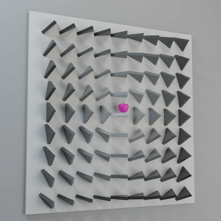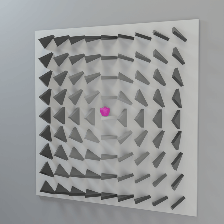 "Adam's apple (pink)" is a wooden relief sculpture from The Sin Inside series, exploring the apple as a symbol of choice, temptation, and consequence. The cold palette and sharp geometric forms create a sense of tension, emphasizing the inner conflict between desire and prohibition. Meticulous craftsmanship and conceptual depth make this piece a striking accent for any contemporary space.