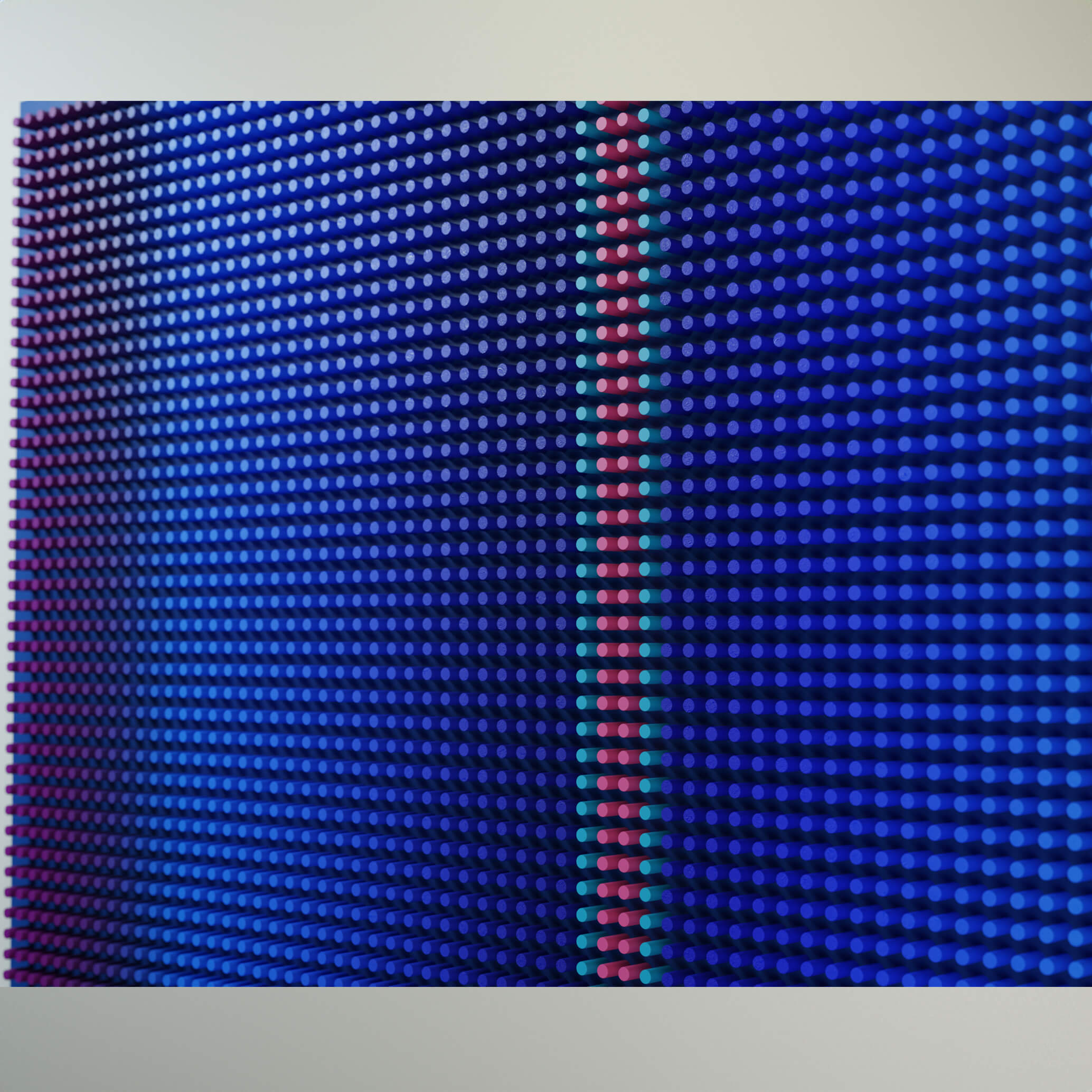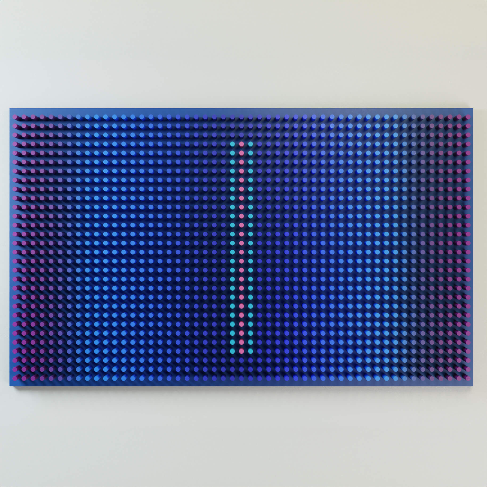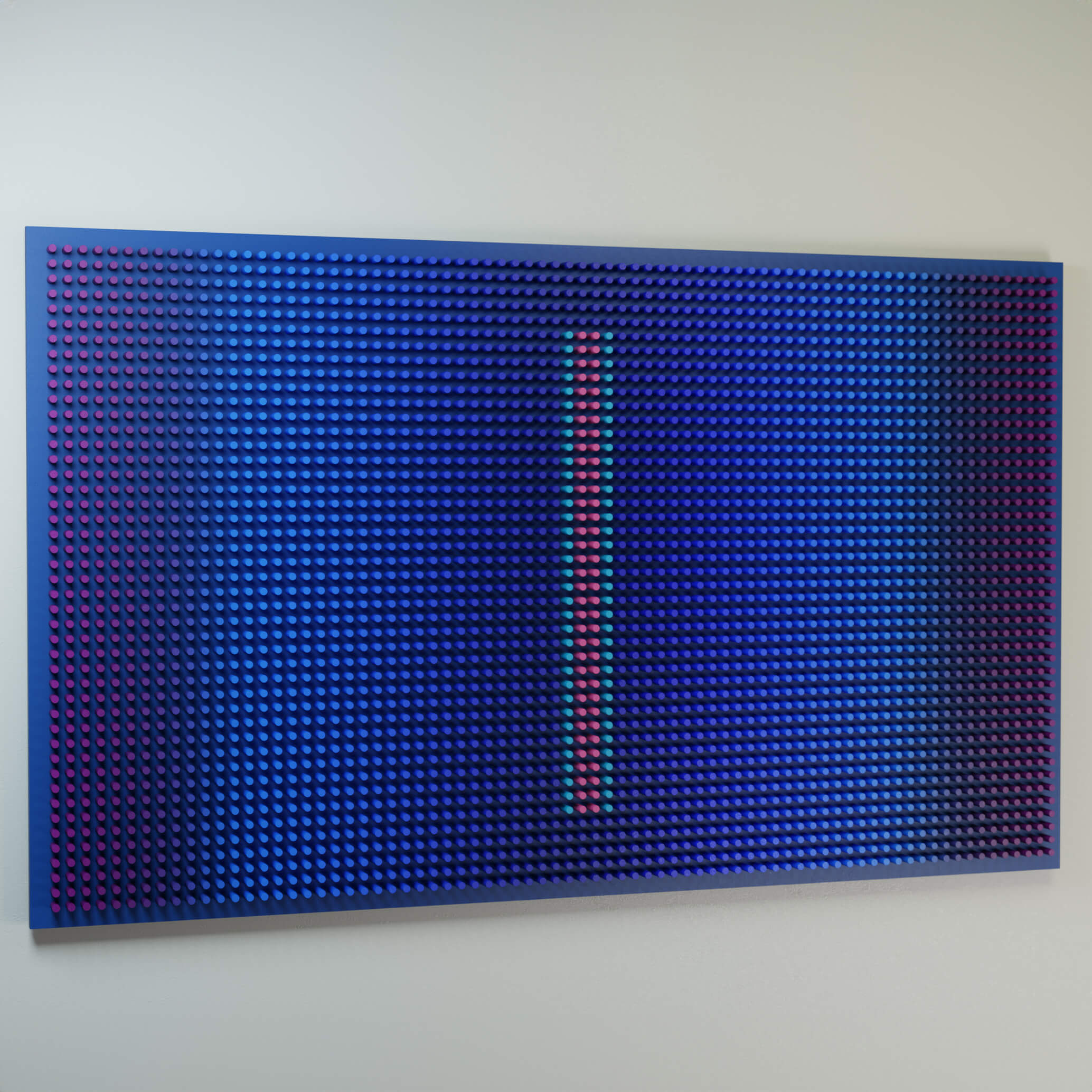 "Blue Screen"is part of the Screens series, where layered wooden structures resemble abstract interfaces — windows into shifting emotional and perceptual states. The work explores how color, rhythm, and geometric segmentation can create the feeling of looking through a digital screen into a deeper, quieter inner landscape.