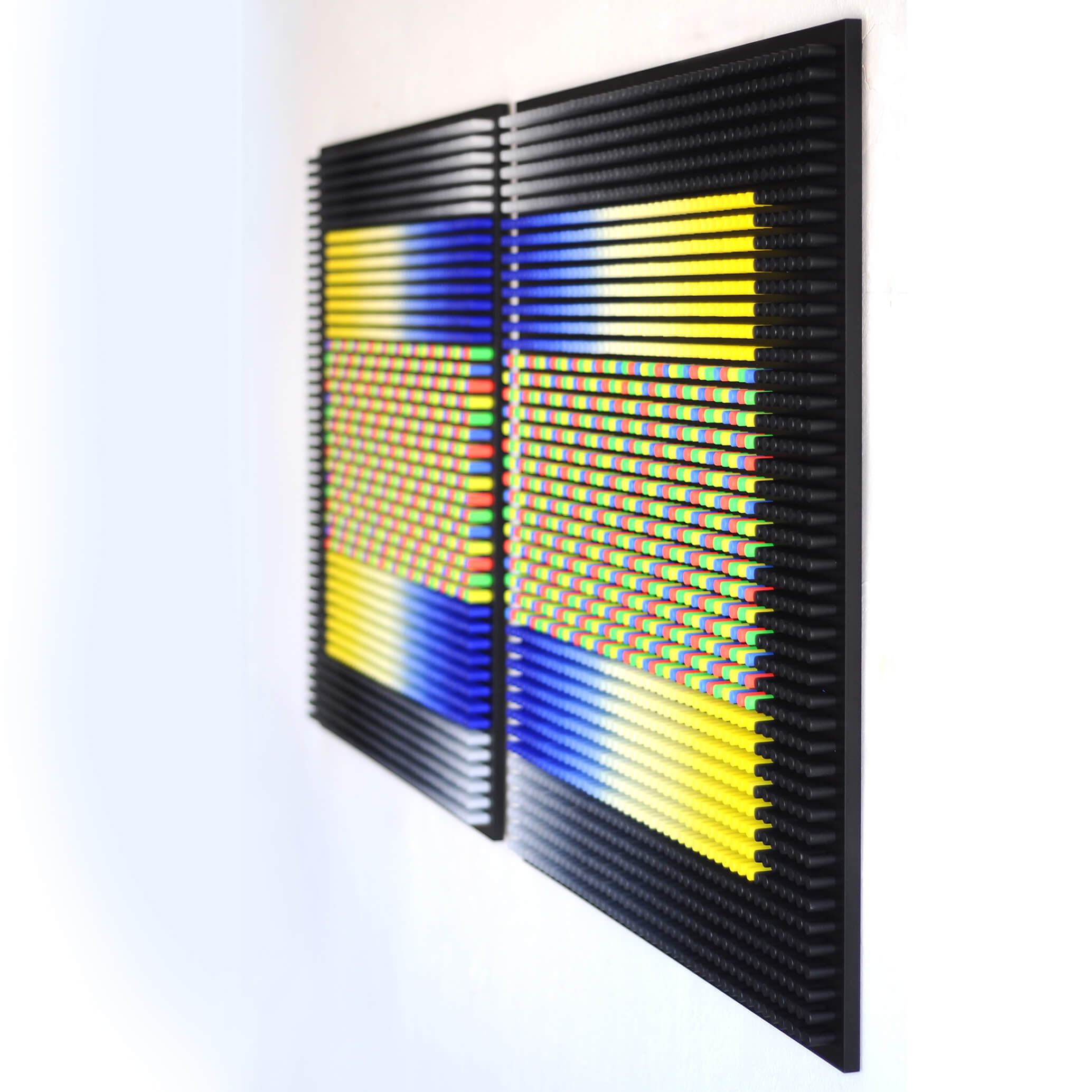 “Independence” belongs to Highways of the Unconscious, a series mapping the invisible routes of thought and instinct. Thousands of wooden elements form a pulsating geometric network that evokes the flow of inner impulses.