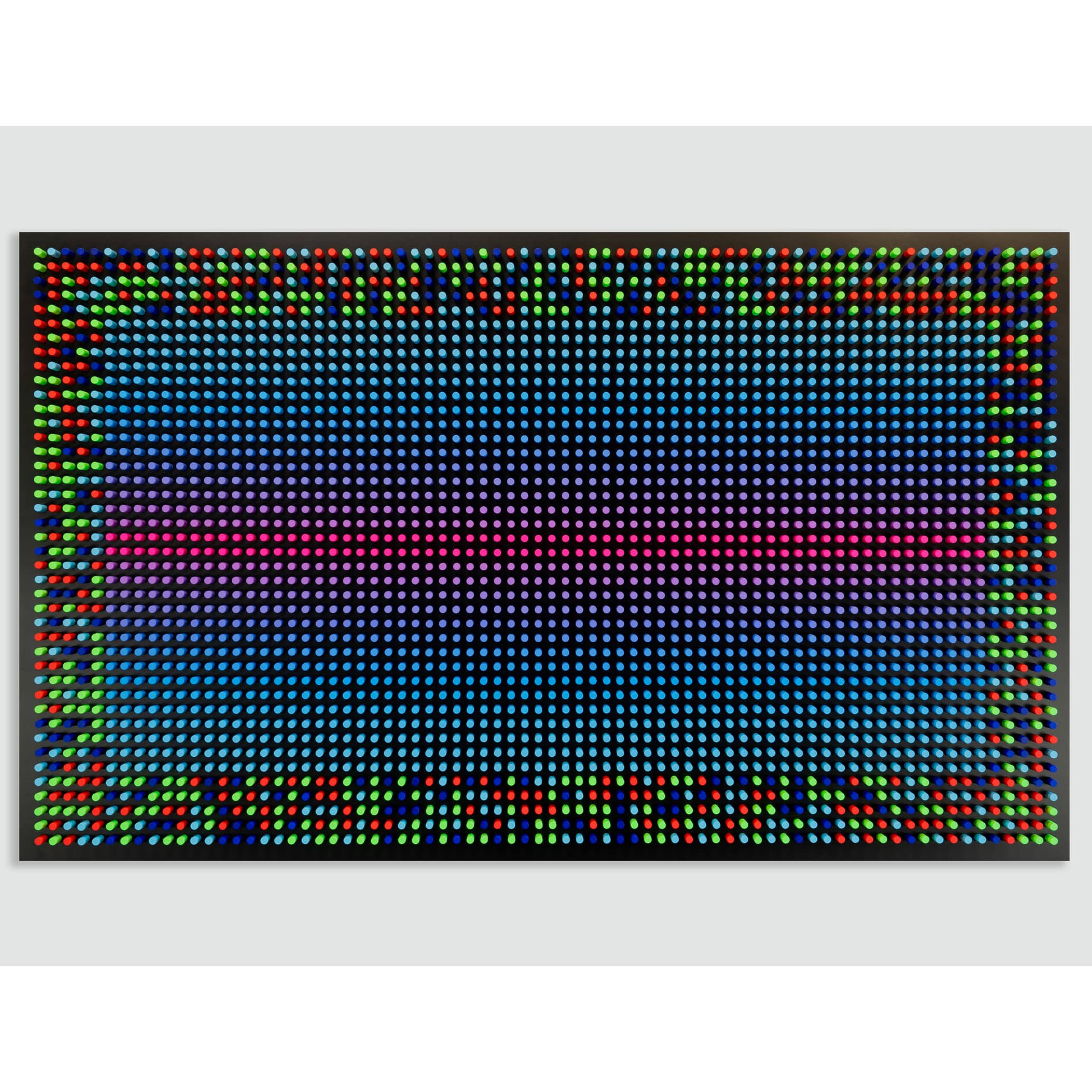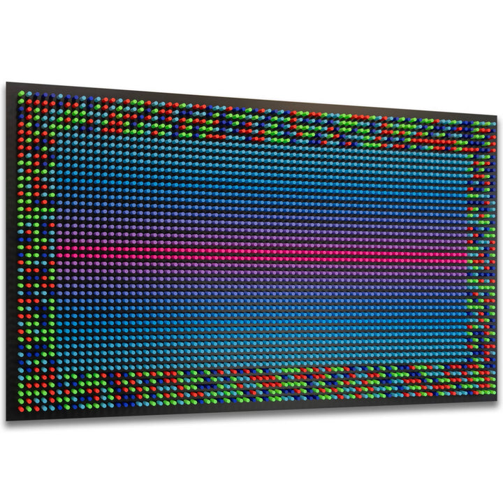 "Starry Sky"is part of the Screens series, where layered wooden structures resemble abstract interfaces — windows into shifting emotional and perceptual states. The work explores how color, rhythm, and geometric segmentation can create the feeling of looking through a digital screen into a deeper, quieter inner landscape.