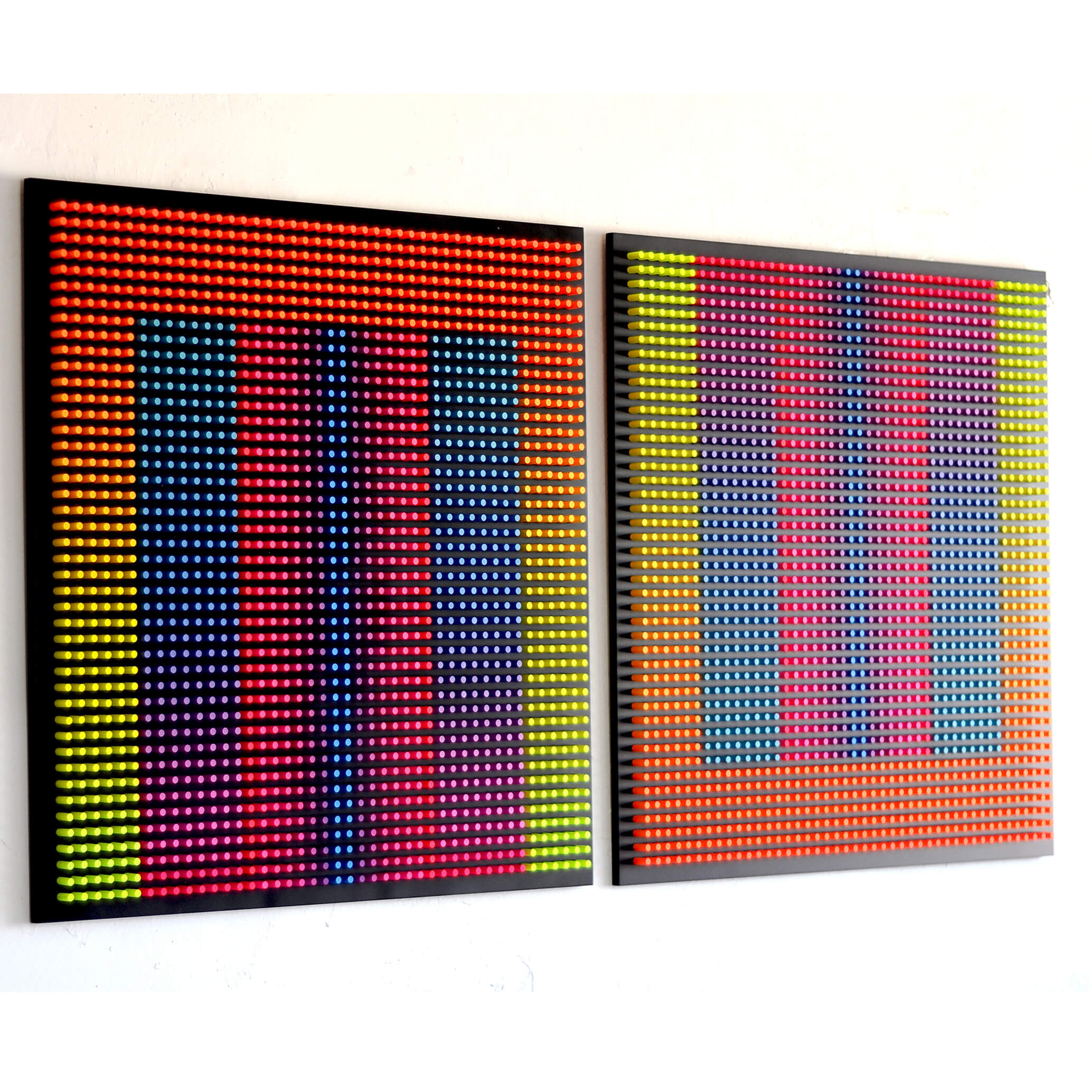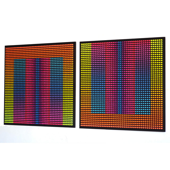 “Filling” belongs to Highways of the Unconscious, a series mapping the invisible routes of thought and instinct. Thousands of wooden elements form a pulsating geometric network that evokes the flow of inner impulses.