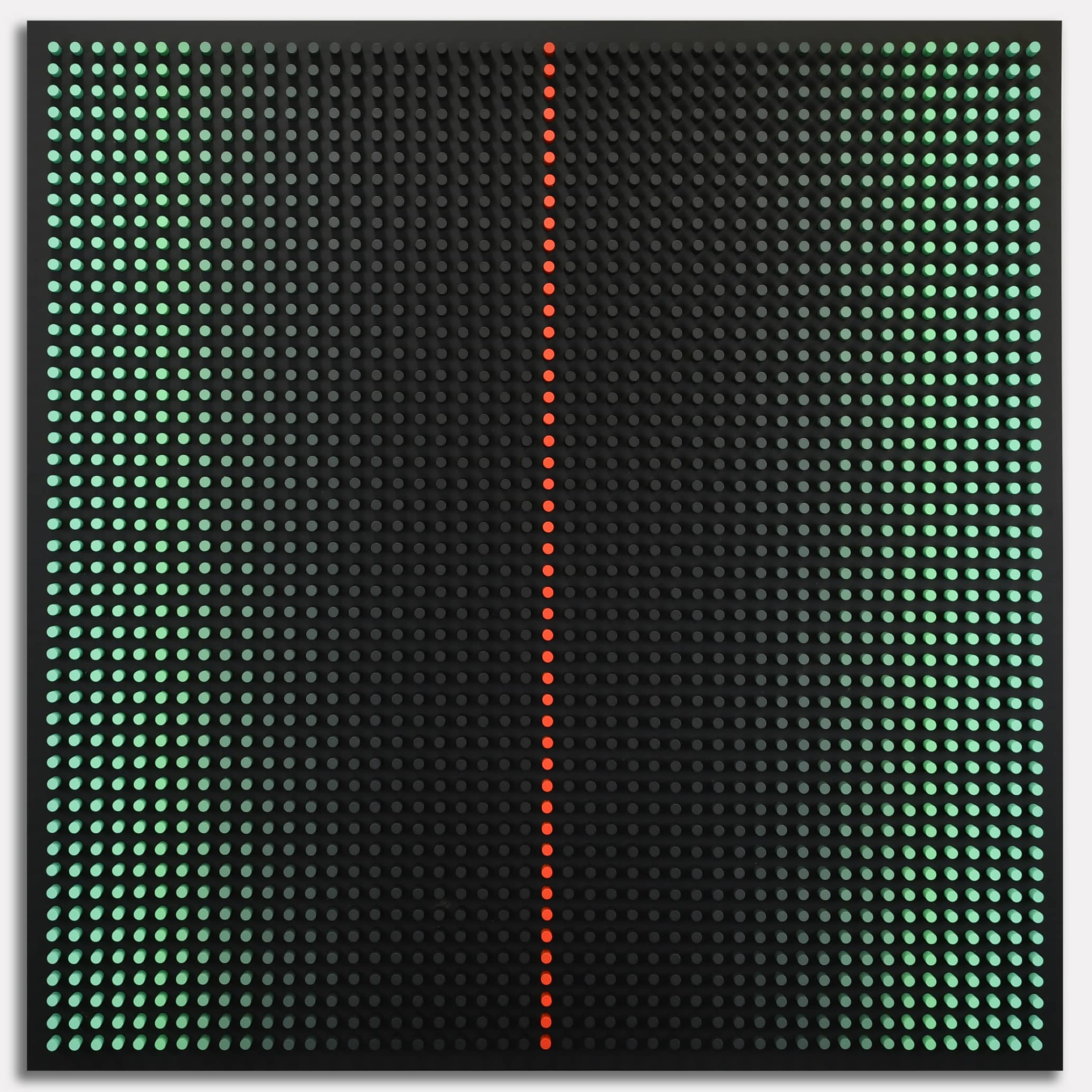 "Green field" is part of the Color Fields series, where broad chromatic surfaces create a meditative visual space. Through subtle gradients, layered texture, and precise wooden structure, the work explores how pure color can shift perception, evoke emotion, and form an atmosphere of quiet intensity.