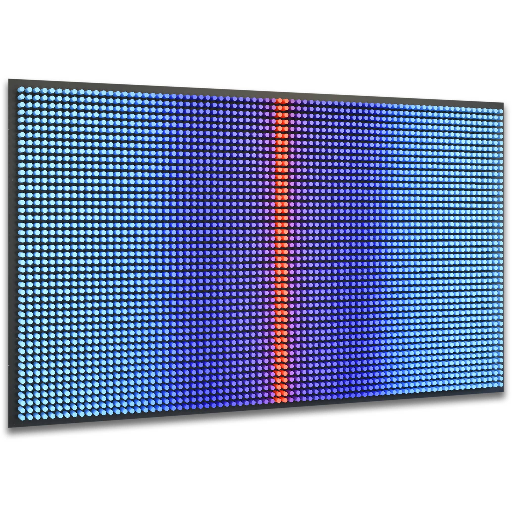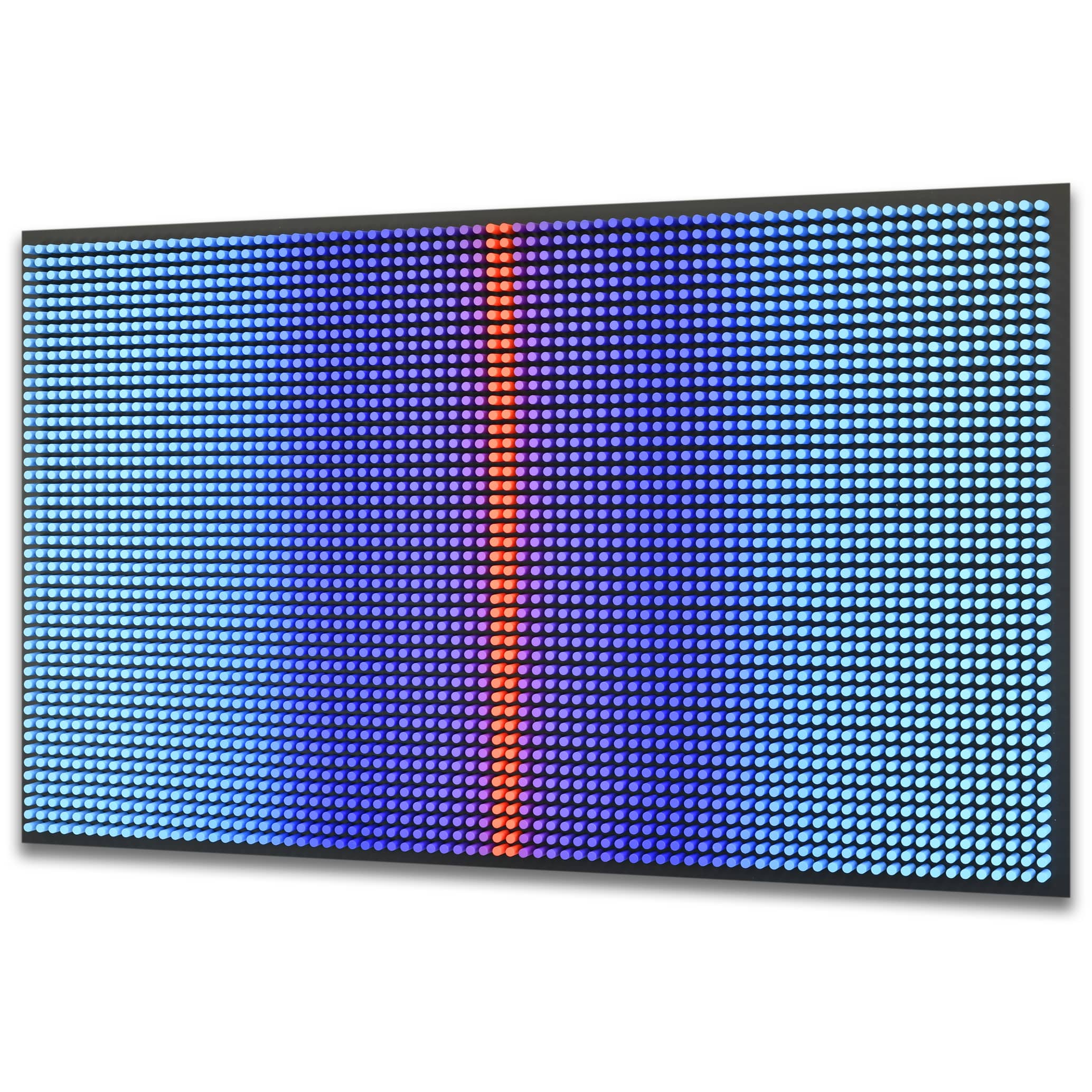 "Cold Screen"is part of the Screens series, where layered wooden structures resemble abstract interfaces — windows into shifting emotional and perceptual states. The work explores how color, rhythm, and geometric segmentation can create the feeling of looking through a digital screen into a deeper, quieter inner landscape.