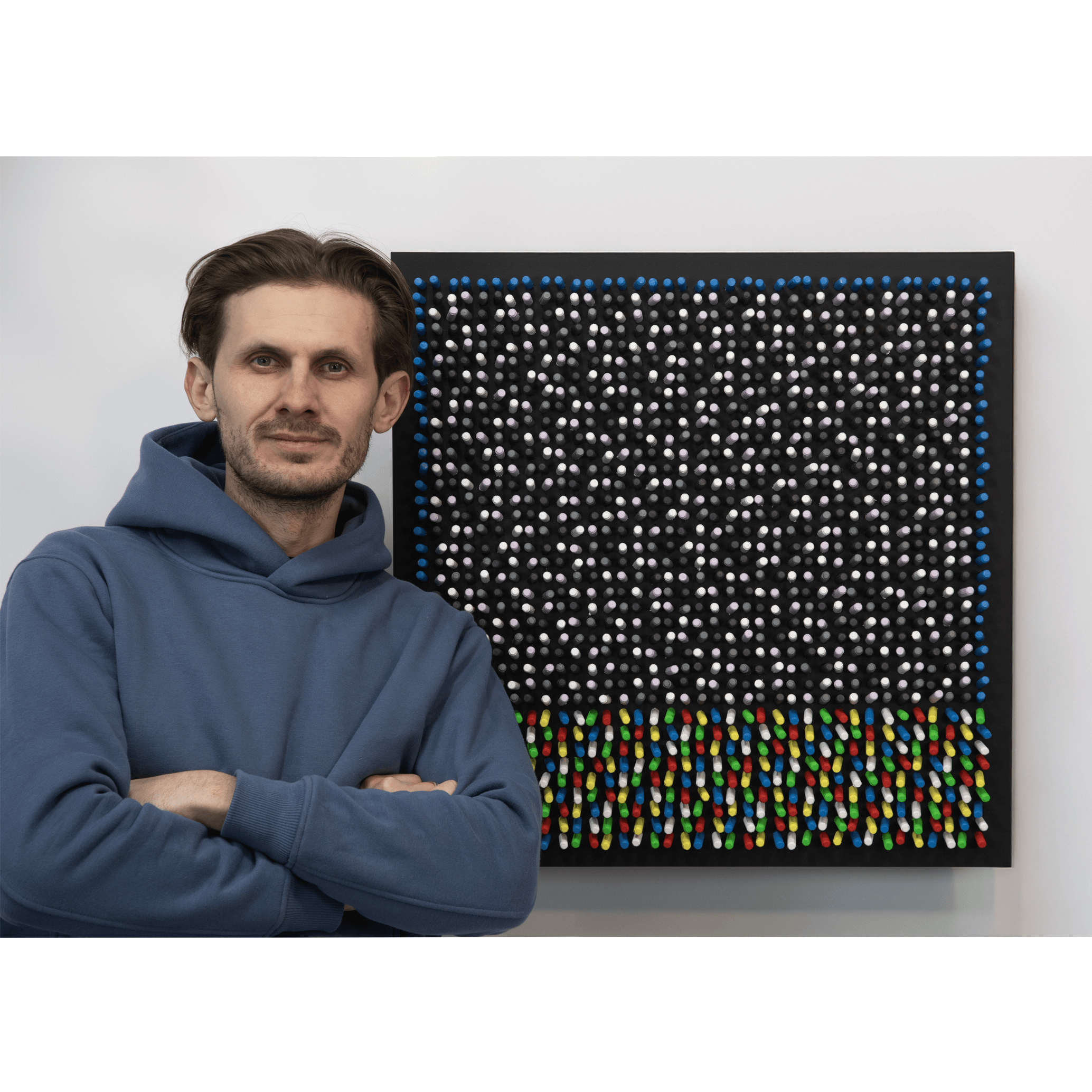 Structured geometry meets intuitive gesture, creating a subtle tension between control and freedom.