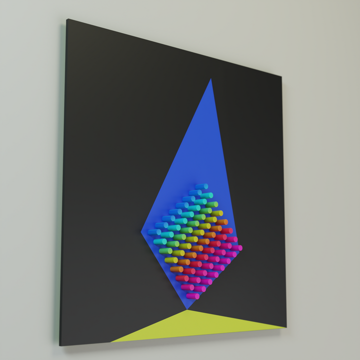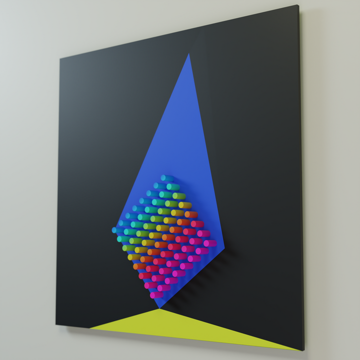 "Suprematism 2"is part of the Color Objects series, where color becomes an independent sculptural entity. Through pure geometric structure and clean chromatic fields, the work explores how color can exist as an object in itself — tangible, spatial, and rhythmically defined. The relief highlights the materiality of color and its ability to shape perception without narrative.