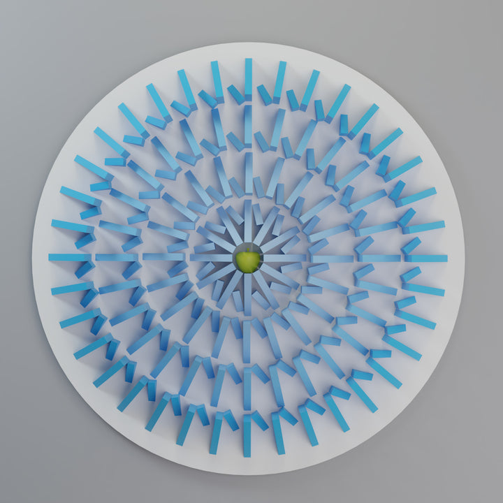 "The Sin Inside (Double)" is a wooden relief sculpture from The Sin Inside series, exploring the apple as a symbol of choice, temptation, and consequence. The cold palette and sharp geometric forms create a sense of tension, emphasizing the inner conflict between desire and prohibition. Meticulous craftsmanship and conceptual depth make this piece a striking accent for any contemporary space.