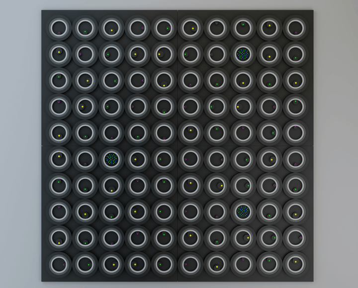 "Vitamins 4"is part of the Metastases series, where geometric order is challenged by organic expansion. Thousands of wooden elements form a structure that spreads, shifts, or mutates across the surface, creating a visual field between growth and distortion. The work reflects how forms — like ideas, memories, or impulses — can replicate, intrude, and reshape the space they inhabit.